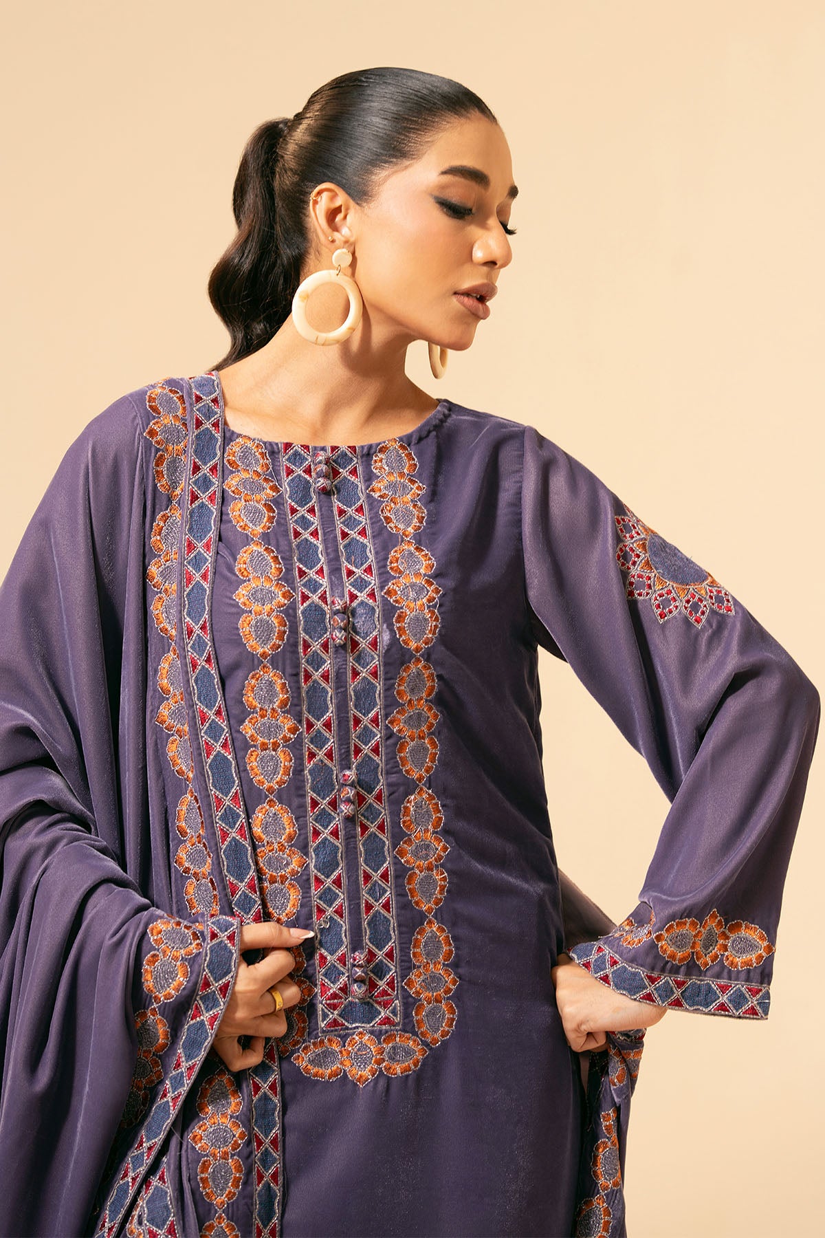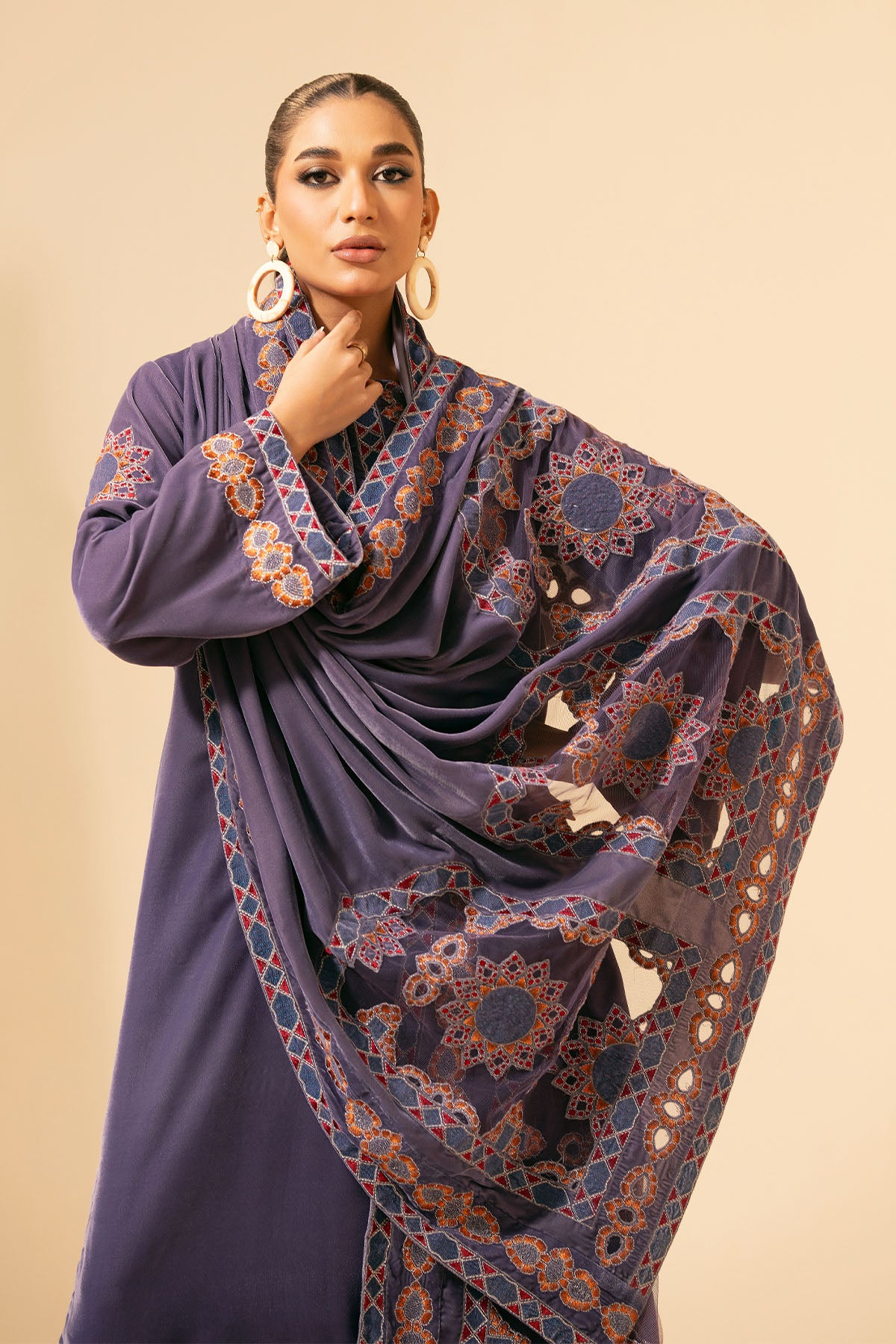 Applique Embroidered Velvet Finished Shawl 2.5 M