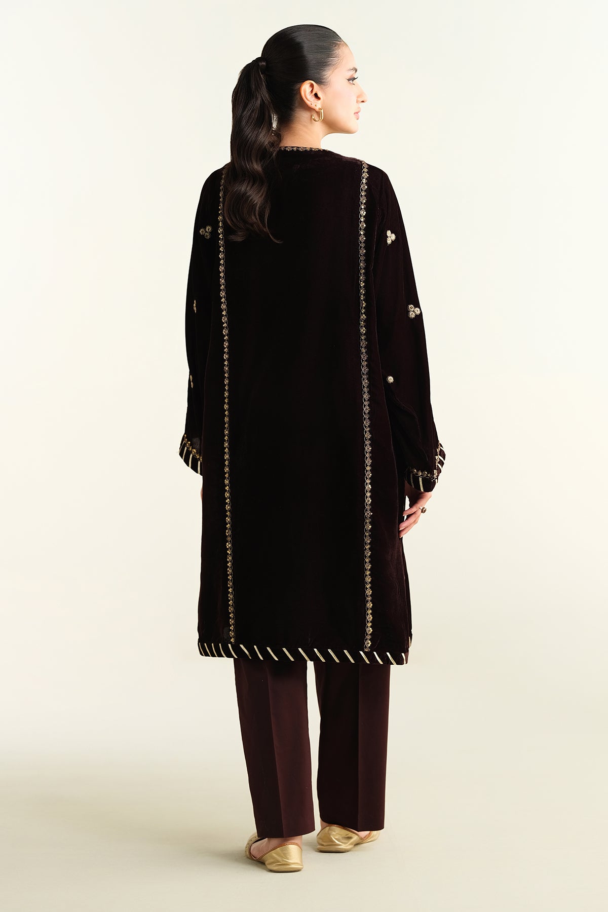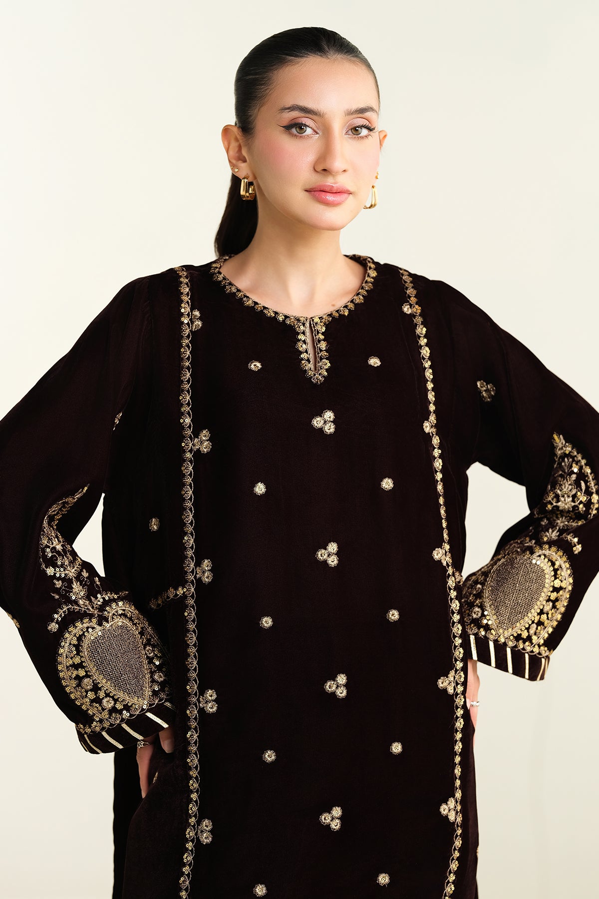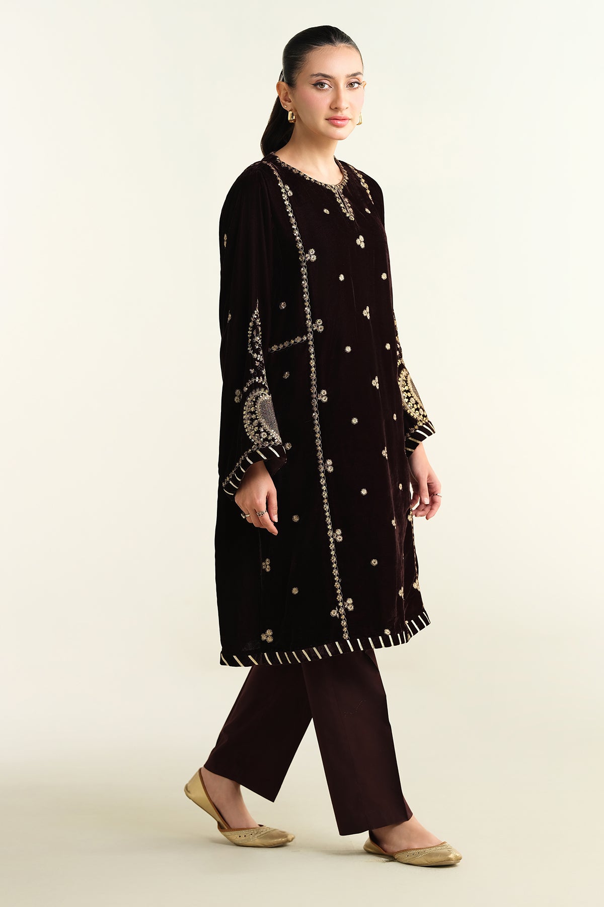 Round Neckline With Slit, Full Sleeves, Embroidered Shirt