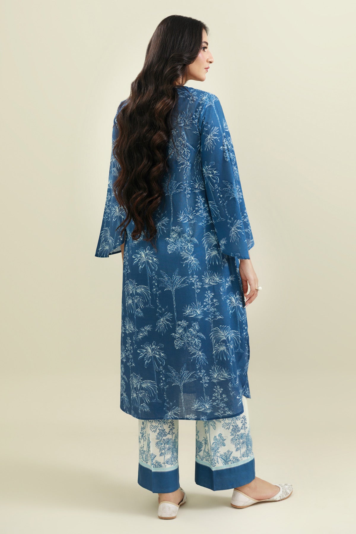 Round Neckline, Piping Details at Placket With Embellishment, Full Sleeves, Round Hem, Long Shirt